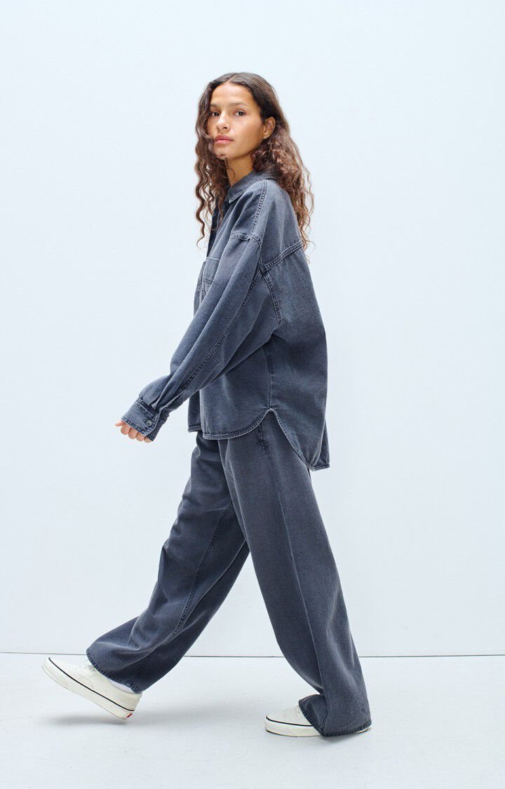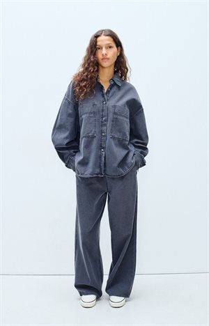 Denimskjorte i en vintage sort vask, let oversize med lange ærmer og knapper. Brug den alene eller match den med bukserne i samme serie.
