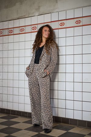 Blazer i det fineste leopard print. Blazeren er almindelig i størrelsen. Match den med bukserne i samme print for ert sæt.