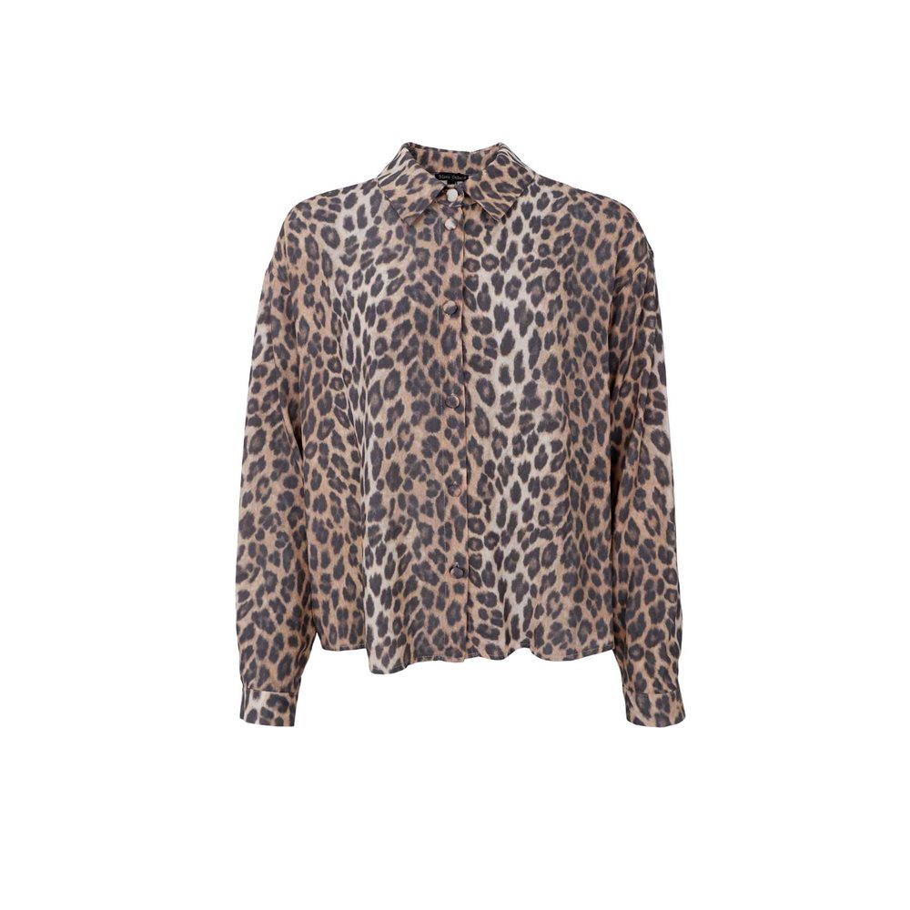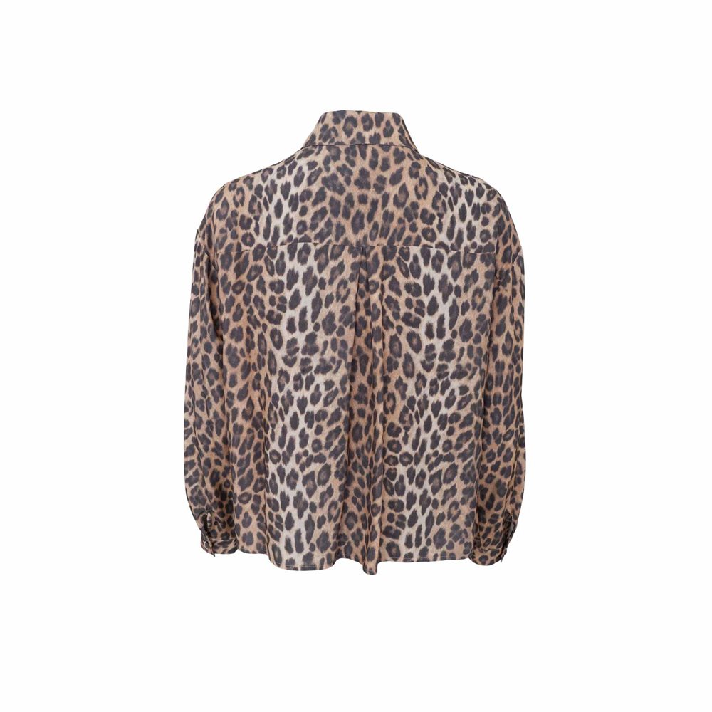 Skøn blød skjorte med leopard print i viskose. Skjorten har lange ærmer og overbetrukne knapper.