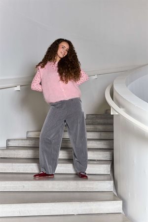 Stribet let baggy buks i barrel facon.