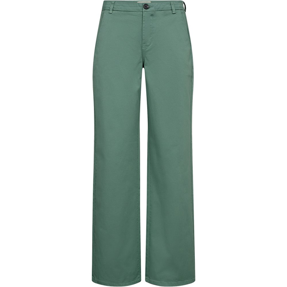 En Chino buks med mellemhøj talje og brede ben i en flot grøn farve. Bukserne har 3% elastan i, hvilket giver en dejlig behagelig pasform.