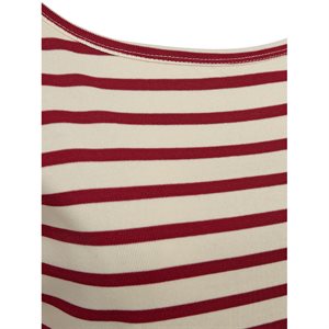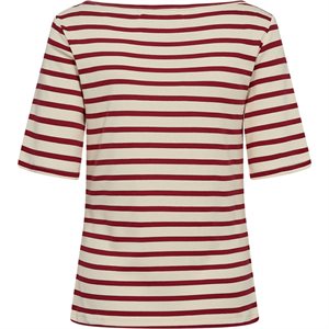 Kortærmet tidsløs stribet T-shirt med bådudskæring og let løs pasform.