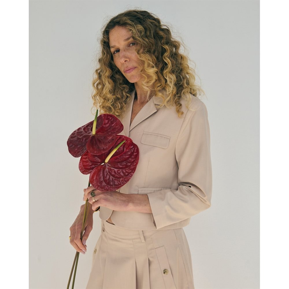 Cara Blazer er en kort og figursyet blazer med let vatterede skulderpuder, der giver et struktureret, men blødt look. De dekorative lommer og knapdetaljer på forsiden tilføjer et klassisk og gennemført finish. Bemærk knappen er mindre end på billedet.