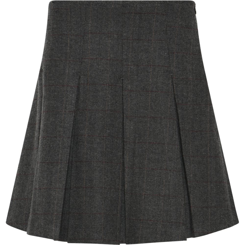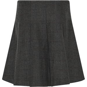 Checki Skirt er en kort nederdel med et flatterende A-snit, strukturerede læg og et elegant ternet mønster i mørkegrå / brune nuancer. En tidløs style der både kan styles preppy og afslappet – perfekt til efteråret og vintergarderoben.