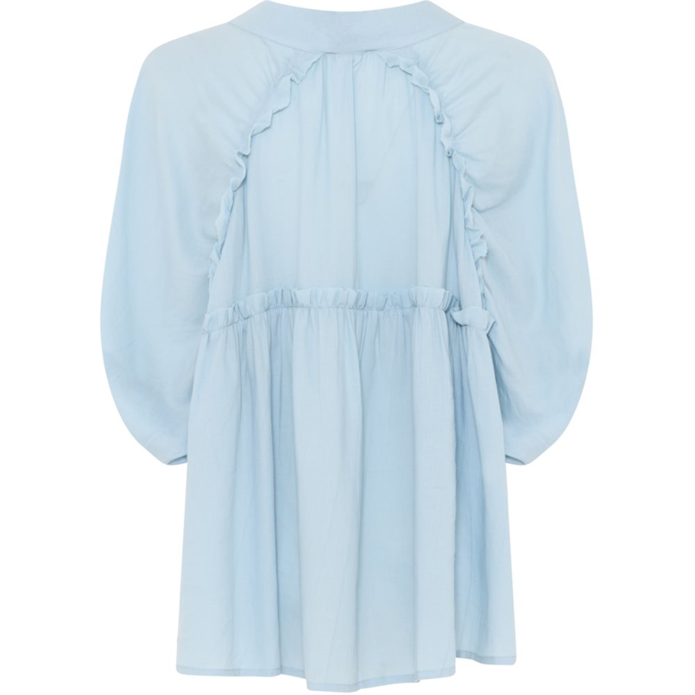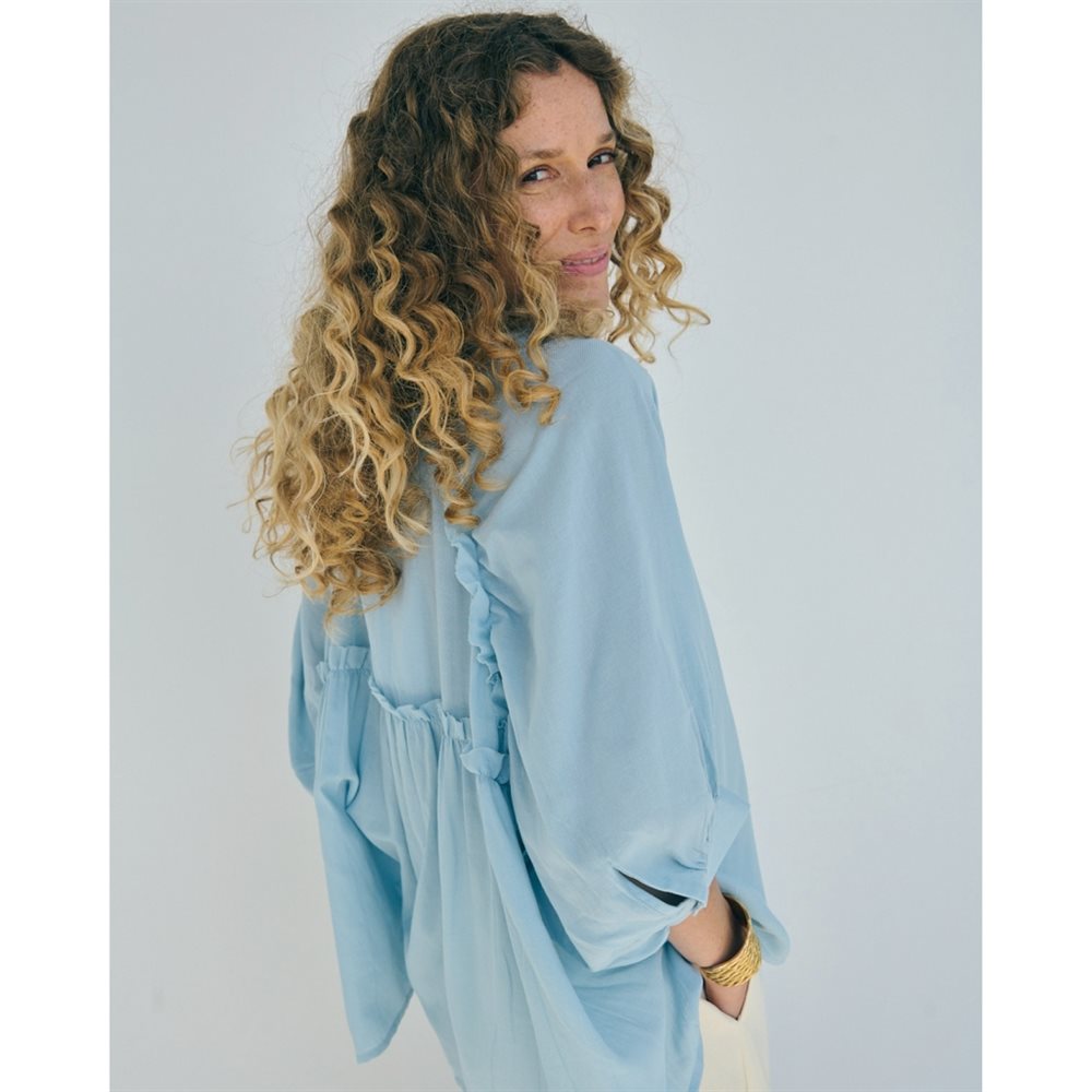 Lea Shirt er en skjorte med smukke detaljer ved både halsen og på ryggen, som giver et elegant og gennemført udtryk. Ryggen er længere bagtil, hvilket skaber et moderne snit, mens ærmerne går til albuen og har en let ballon-effekt, der tilføjer bevægelse og et blødt, feminint touch.