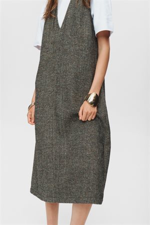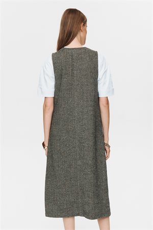 Spencer i en fin kraftig gråmeleret kvalitet. Med v-udskæring og et løst fit, perfekt med skjorte eller t-shirt under.