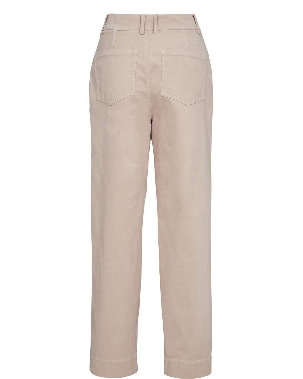 Fløjlsbuks med lige, let brede ben, lynlås og knap. Bukserne har skrålommer og to baglommer.